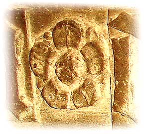 (Kreuzigungs-Relief) O +++ (Rosette) REX +++ GLORIE +++ VENI +++ CUM +++ PACE +++ CRISTIANI +++ DUISTERWALT +++ ME +++ FECIT +++ ANNNO DOMINI MCCCCXLIIII +++.